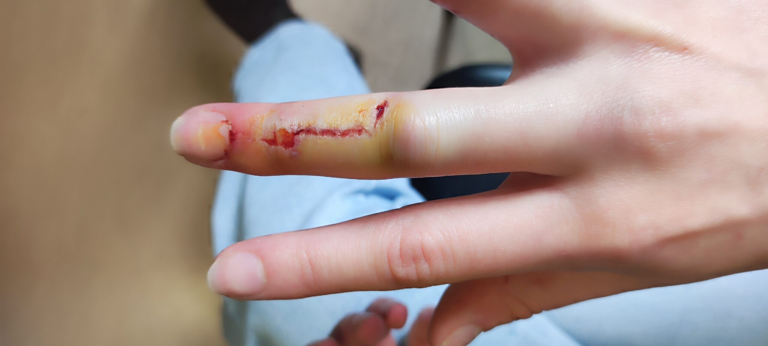 Μετεφέρθη στο Νοσοκομείο που εξετάσθηκαν τα τραύματά της , έγινε περιποίηση αυτών και της δόθηκε φαρμακευτική αγωγή (αντιβίωση κλπ)