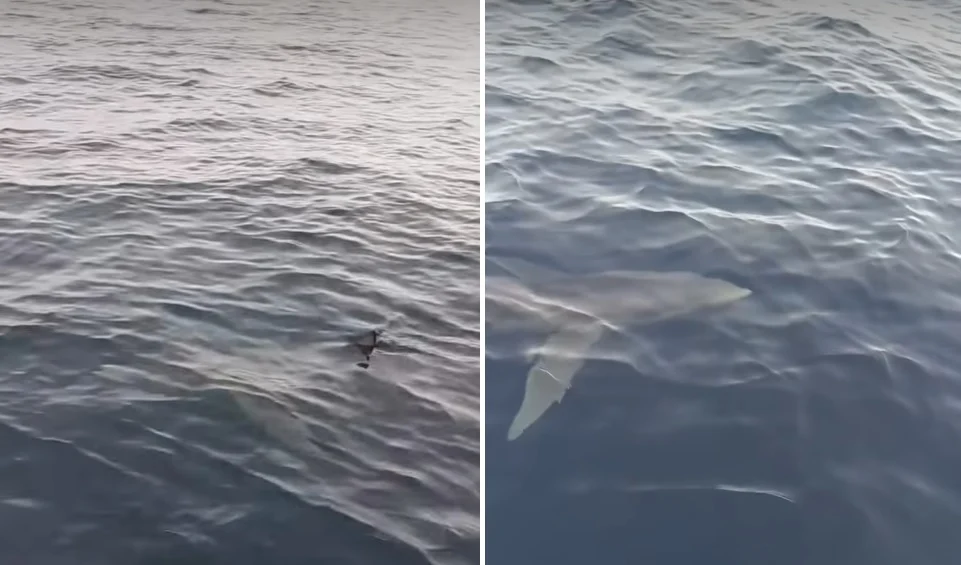 «Παιδιά, καρχαρίας μπροστά μας, κάτω από το σκάφος, πάρα πολύ μεγάλος. Τόσο κοντά πρώτη φορά το βλέπω», ακούγεται να λέει ο Γιάννης Περγαντής, που δημοσίευσε το βίντεο.