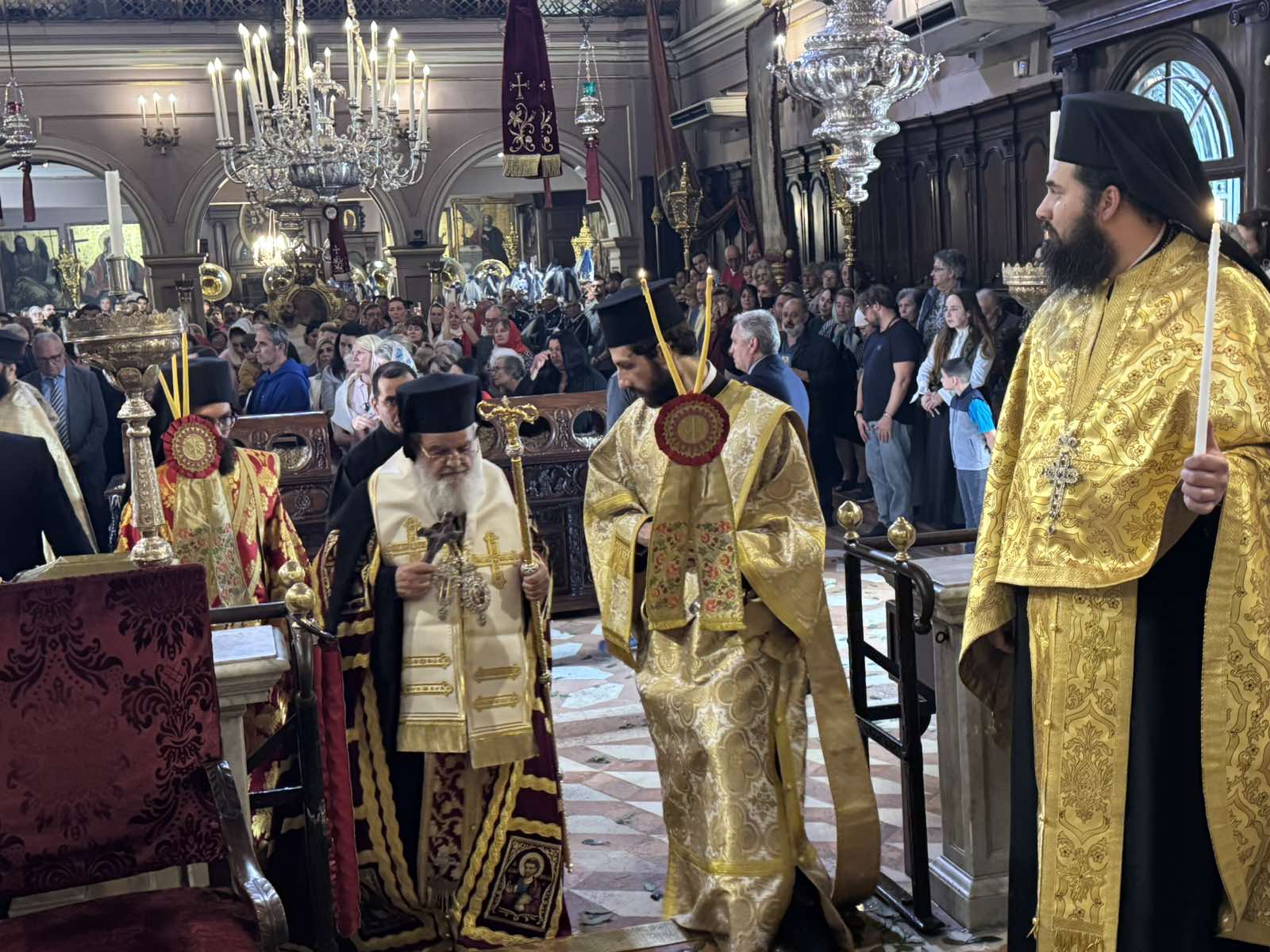 Προηγήθηκε η πανηγυρική ψαλμώδηση του «Χριστός Ανέστη», ενώ στην περιφορά προεξήρχε ο Σεβασμιώτατος Μητροπολίτης Βρεσθένης κ. Θεόκλητος, προσκεκλημένος του Σεβασμιωτάτου Μητροπολίτου Κερκύρας, Παξών και Διαποντίων Νήσων κ. Νεκταρίου. Κατά τα «μπάσματα» παιάνισαν προς τιμήν του Αγίου, κατά την κερκυραϊκή παράδοση, η Παλαιά Φιλαρμονική και η Φιλαρμονική ΜΑΝΤΖΑΡΟΣ, ενώ πλήθη κόσμου συμμετείχαν στην περιφορά τόσο εντός του ναού, όσο και στις θύρες, όπου κατά παράδοσιν βγαίνει το ιερό σκήνωμα και ευλογεί τον λαό, βασταζόμενο από τέσσερις κληρικούς, με την παρουσία και των αρχών του τόπου.