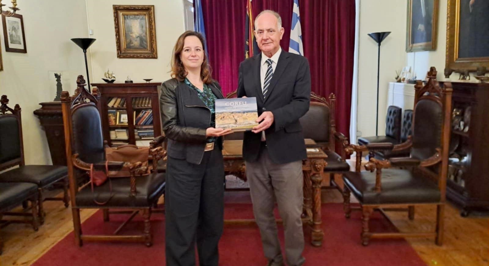 Τη Γενική Πρόξενο της Γαλλίας στην Ελλάδα, Diane Roeser, συνοδευόμενη από τον Πρόξενο της Γαλλίας στην Κέρκυρα, Φλοράν Καββάδα, υποδέχθηκε την Τετάρτη στο Ιστορικό Δημαρχείο, ο Αντιδήμαρχος Βιώσιμης Τουριστικής Ανάπτυξης και Δημοσίων Σχέσεων Σπύρος Χαλικιόπουλος.