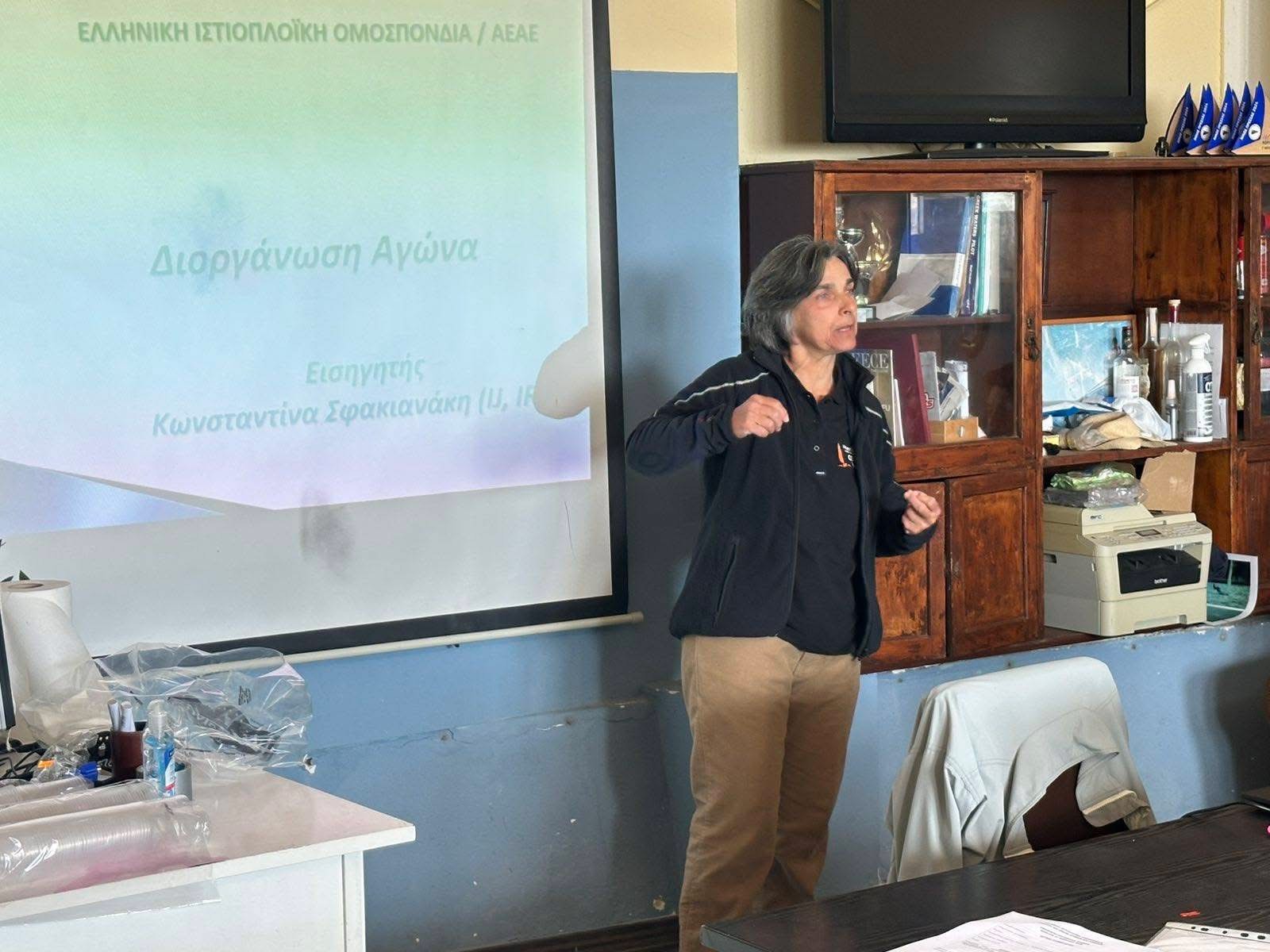 Εισηγήτρια του σεμιναρίου ήταν η κύρια Ντίνα Σφακιανάκη, μέλος της ΑΕΑΕ , διεθνής κριτής αγώνων ιστιοπλοΐας και διεθνής καταμετρήτρια.