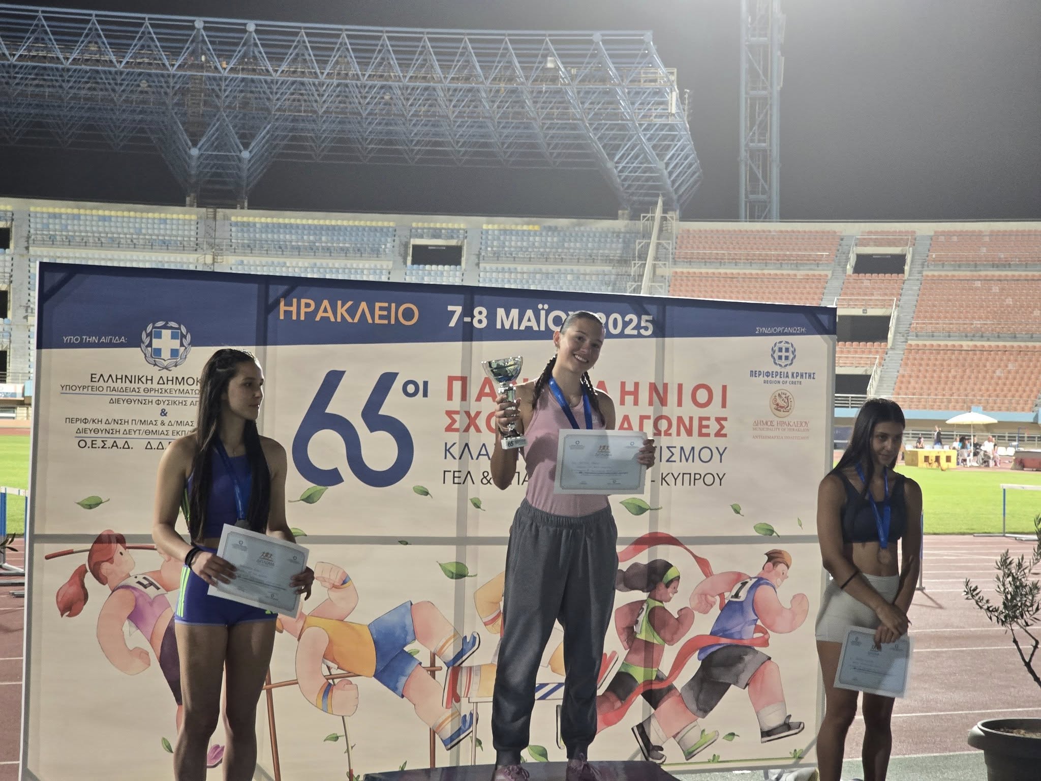 Η άλτρια του επί κοντώ διέπρεψε στο 66ο Πανελλήνιο Μαθητικό Πρωτάθλημα, αφού, πλην της άνετης νίκης της σημείωσε και την καλύτερη επίδοση όλων των εποχών σε αυτούς.