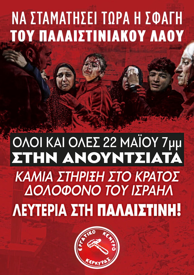 Καμία στήριξη στο κράτος δολοφόνο του Ισραήλ