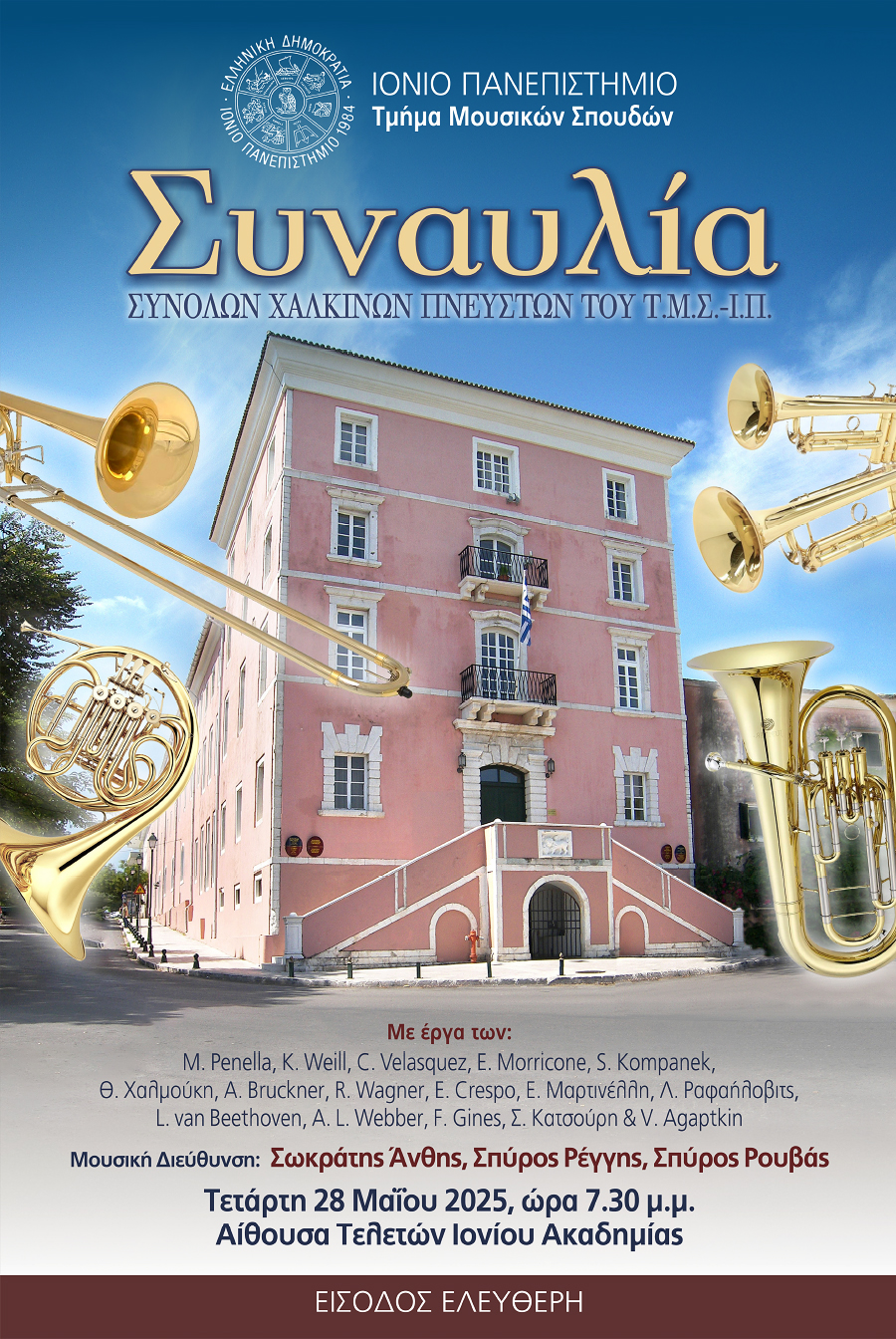 ΠΟΛΙΤΙΣΜΟΣ - ΕΚΔΗΛΩΣΕΙΣΕΙΔΗΣΕΙΣCULTURE Συναυλία συνόλων χάλκινων πνευστών του ΤΜΣ Την Τετάρτη 28 Μαΐου, στις 7.30, στην αίθουσα τελετών της Ιονίου Ακαδημίας. Last updated: 06/10/2025 17:49 CorfuPress.com Published: 22/05/2025 Share SHARE Την Τετάρτη 28 Μαΐου, στις 7.30, στην αίθουσα τελετών της Ιονίου Ακαδημίας. Παρουσίαση μουσικών και μουσικολογικών συγγραμμάτων της Δράσης ΚΑΛΛΙΠΟΣ Παρουσίαση μουσικών και μουσικολογικών συγγραμμάτων της Δράσης ΚΑΛΛΙΠΟΣ “Συναυλία για τέσσερα χέρια: Μια Ματιά στην Παιδικότητα” «Σύνδρομα υπερχρήσης σε επαγγελματίες μουσικούς: Ο ρόλος της θεραπευτικής άσκησης» «Σύνδρομα υπερχρήσης σε επαγγελματίες μουσικούς: Ο ρόλος της θεραπευτικής άσκησης» Share This Article Facebook Whatsapp Whatsapp Email Copy Link Print Previous Article Η ΕΛΜΕ για τις εξαγγελίες της κυβέρνησης για βία και την παραβατικότητα των ανηλίκων Next Article ΑΔΕΔΥ: Όλοι στη συγκέντρωση διαμαρτυρίας για την Παλαιστίνη Δεν υπάρχουν Σχόλια Δεν υπάρχουν Σχόλια Αφήστε μια απάντηση Ακύρωση απάντησηςΗ ηλ. διεύθυνση σας δεν δημοσιεύεται. Τα υποχρεωτικά πεδία σημειώνονται με *Σχόλιο * Όνομα * Email * Ιστότοπος Αποθήκευσε το όνομά μου, email, και τον ιστότοπο μου σε αυτόν τον πλοηγό για την επόμενη φορά που θα σχολιάσω. ΑναζήτησηΑναζήτησηRecent PostsΌλα τα μάτια στον Θοδωρή, τον καπετάνιο μας! Τη Δευτέρα 22 Σεπτεμβρίου γιορτάζει… Σαν Σήμερα 22/9: Τα σημαντικότερα γεγονότα… Η πρόγνωση του καιρού Έφηβοι Ιονίου: Με περίπατο, συνεχίζουν στο Rising Stars! Recent CommentsΧωρίς σχόλια για εμφάνιση.