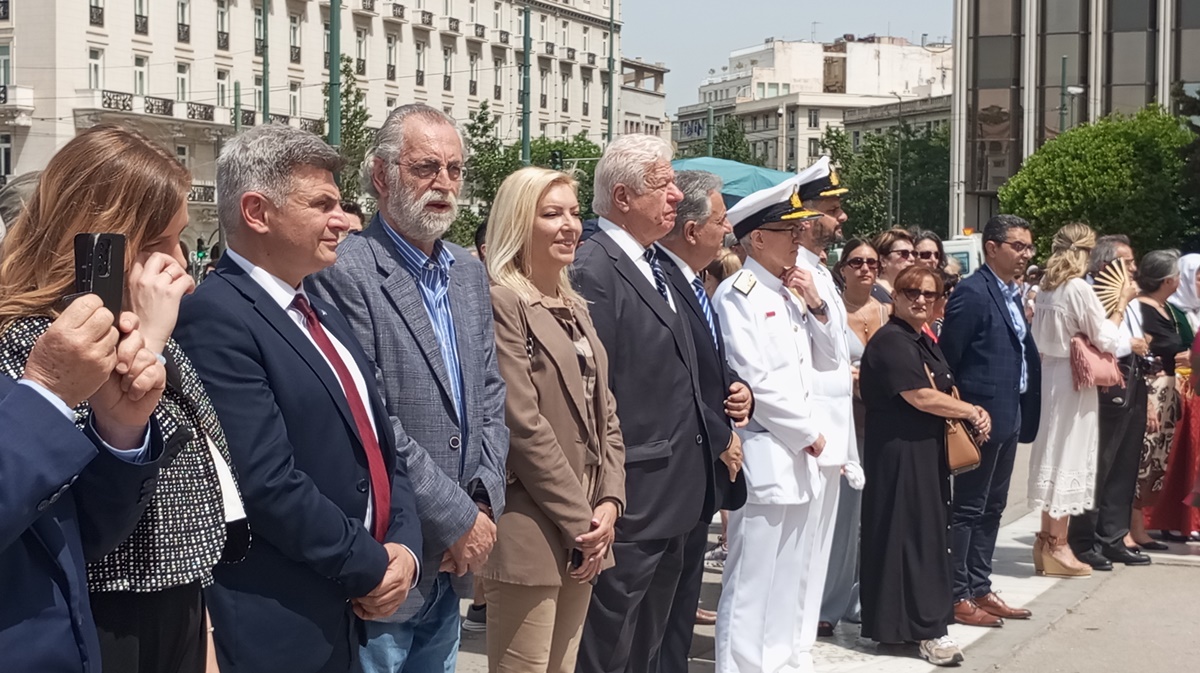 Στεφάνι κατέθεσαν οι επικεφαλείς των φορέων ή εκπρόσωποί τους: ΠΡΟΕΔΡΟΥ ΤΗΣ ΔΗΜΟΚΡΑΤΙΑΣ: Ο Υπασπιστής Πολεμικού Ναυτικού κ. Ιωάννης Γκαντζέλας, Αντιπλοίαρχος ΠΡΟΕΔΡΟΥ ΤΗΣ ΒΟΥΛΗΣ: Ο κ. Αθανάσιος Καββαδάς Βουλευτής Λευκάδας ΠΡΟΕΔΡΟΥ ΠΑΣΟΚ: Ο κ Μιχάλης Αεράκης Γραμματέας Τομέα Πολιτισμού ΠΑΣΟΚ. ΠΡΟΕΔΡΟΥ ΣΥΡΙΖΑ: Ο κ. Νικόλαος Φαραντούρης Ευρωβουλευτής Η ΠΡΟΕΔΡΟΣ ΠΛΕΥΣΗΣ ΕΛΕΥΘΕΡΙΑΣ κ. Ζωή Κωνσταντοπούλου με την κ. Αλεξάνδρα Σάντα ΑΡΧΗΓΟΥ ΓΕΝΙΚΟΥ ΕΠΙΤΕΛΕΙΟΥ ΕΘΝΙΚΗΣ ΑΜΥΝΑΣ: κ. Χρήστος Κολέτσης, Αρχιπλοίαρχος. Ο ΠΕΡΙΦΕΡΕΙΑΡΧΗΣ ΙΟΝΙΩΝ ΝΗΣΩΝ κ. Ιωάννης Τρεπεκλής ΠΕΡΙΦΕΡΕΙΑΡΧΗ ΑΤΤΙΚΗΣ: Ο κ. Χαράλαμπος Αλεξανδράτος εντεταλμένος σύμβουλος σε θέματα λειτουργίας ΚΤΕΟ ΔΗΜΑΡΧΟΥ ΑΘΗΝΑΙΩΝ: H κ. Ρωξάνη Μπέη Αντιδήμαρχος Καθαριότητας και Ανακύκλωσης. Ο ΠΡΟΕΔΡΟΣ ΕΠΤΑΝΗΣΙΑΚΗΣ ΣΥΝΟΜΟΣΠΟΝΔΙΑΣ κ. Χαράλαμπος Κοντογεώργης Ο ΠΡΟΕΔΡΟΣ ΠΑΝΘΕΣΣΑΛΙΚΗΣ ΣΤΕΓΗΣ κ. Στέφανος Κούτρας ΠΑΝΕΛΛΗΝΙΑ ΟΜΟΣΠΟΝΔΙΑ ΚΡΗΤΙΚΩΝ ΣΩΜΑΤΕΙΩΝ: Ο κ. Ζαχαρίας Καμπουράκης Γενικός Γραμματέας