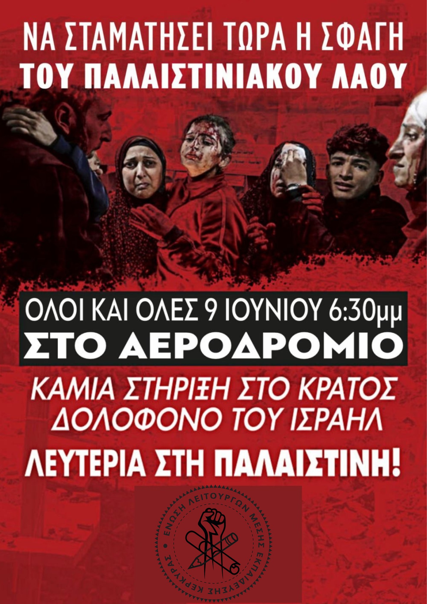 Να σταματήσει τώρα η σφαγή του Παλαιστινιακού Λαού. Καμία στήριξη στο κράτος δολοφόνο του Ισραήλ.