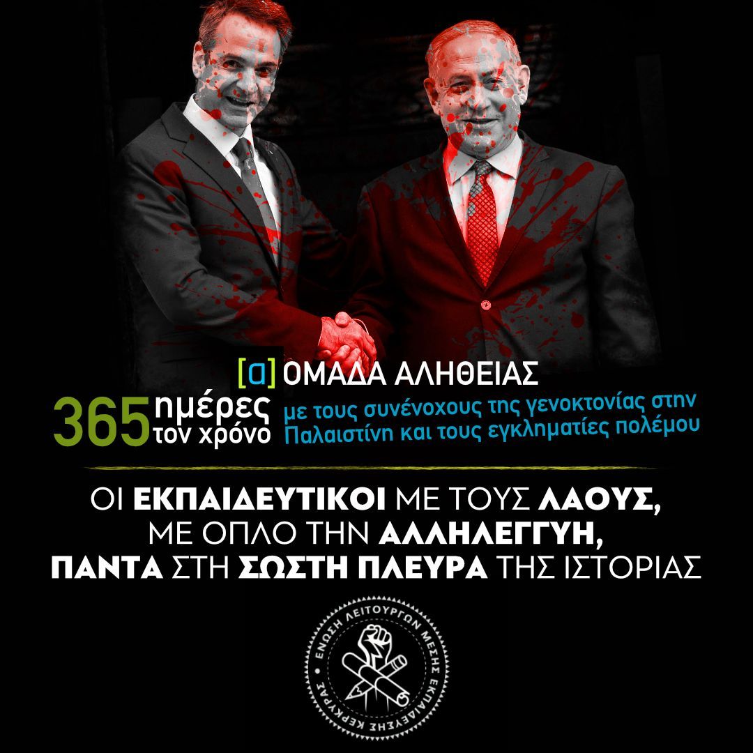 Εδώ και καιρό έχουν πέσει οι μάσκες για την ελληνική κυβέρνηση και όλα τα κόμματα που έκαναν λόγο για δικαίωμα στην αυτοάμυνα του Ισραήλ. Η σωστή πλευρά της ιστορίας είναι εδώ, στον αγώνα για το δικαίωμα όλων των λαών να ζουν ειρηνικά στον τόπο τους και όχι με τα σφαγεία για τα συμφέροντα των εκμεταλλευτών όλου του κόσμου.