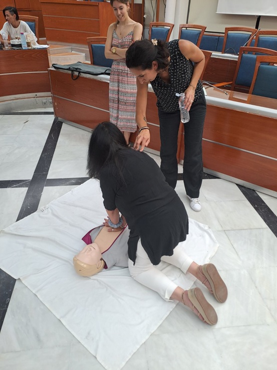 Η δράση πραγματοποιήθηκε σε συνεργασία με το Γενικό Νοσοκομείο Κέρκυρας «Η Αγία Ειρήνη» και την 1η ΤΟΜΥ Κέρκυρας, με εισηγήτριες την κα Άννα Καρπουζά (ΓΝΚ) και την κα Μαριάνα Χαλιδιά (1η ΤΟΜΥ). Οι συμμετέχοντες εκπαιδεύτηκαν σε κρίσιμες δεξιότητες, όπως η Καρδιοπνευμονική Αναζωογόνηση (ΚΑΡΠΑ), η αντιμετώπιση πνιγμονής και πνιγμού σε παιδιά και ενήλικες, η τοποθέτηση στη θέση ανάνηψης και οι βασικές αρχές παροχής πρώτων βοηθειών.