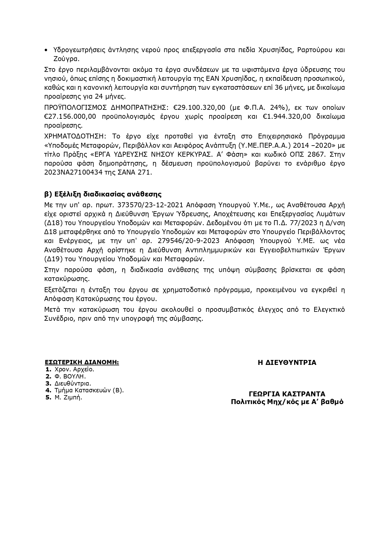 Επίσημη παραδοχή: Η Κυβέρνηση ακόμη ψάχνει χρηματοδότηση για τα έργα ύδρευσης Κέρκυρας!