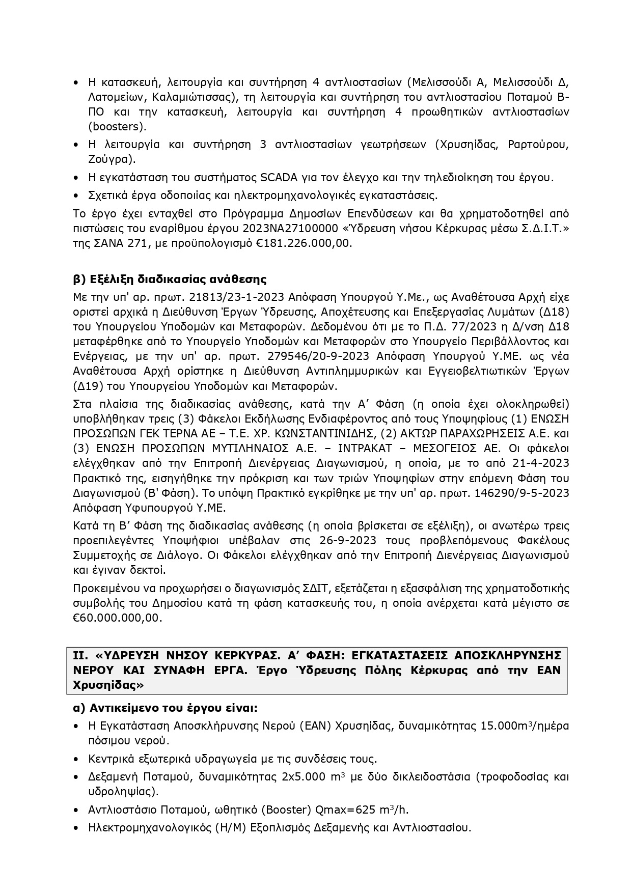 Επίσημη παραδοχή: Η Κυβέρνηση ακόμη ψάχνει χρηματοδότηση για τα έργα ύδρευσης Κέρκυρας!