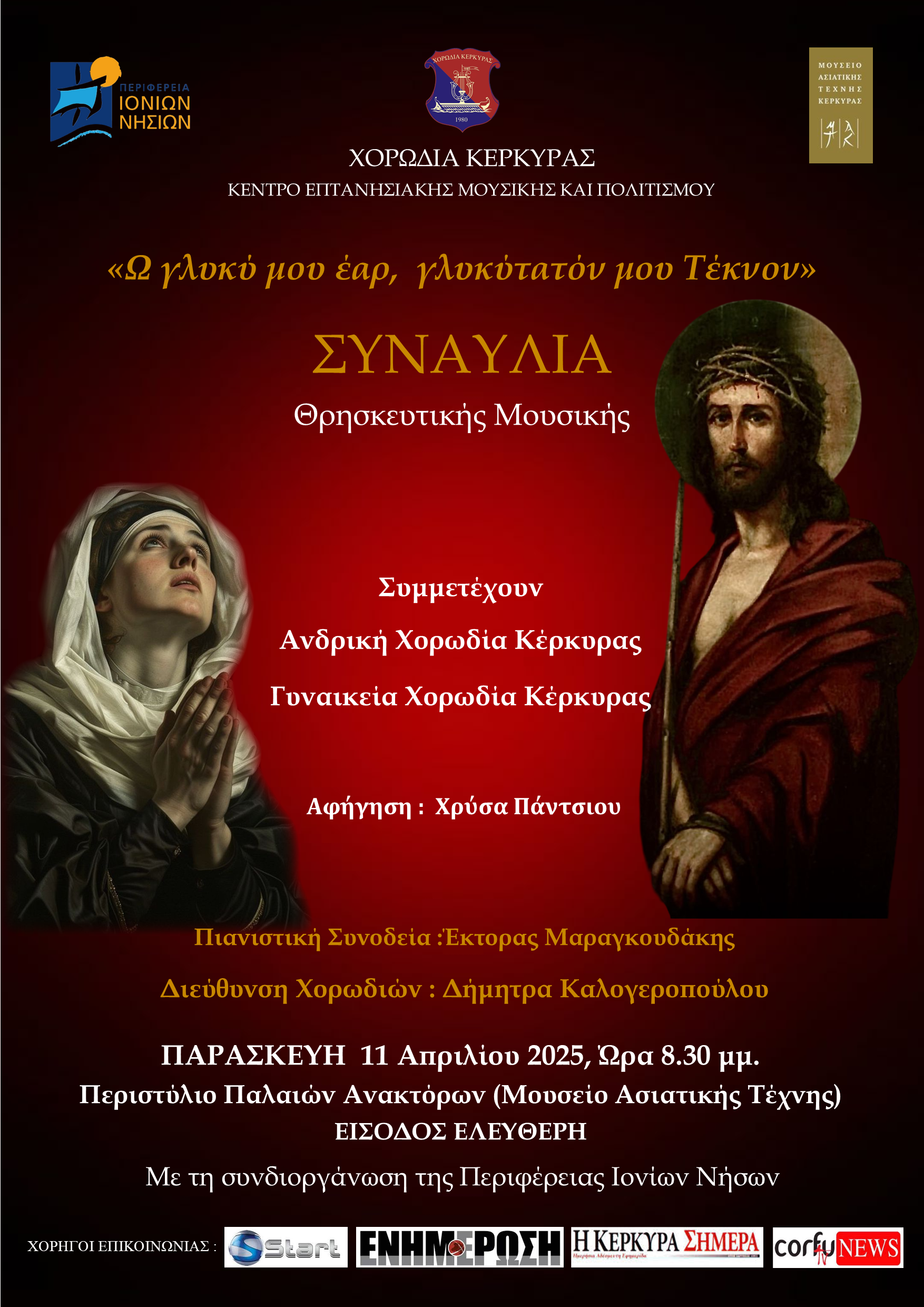 Σε αυτήν θα τραγουδήσουν ο Βασίλης Γισδάκης και η Σταματίνα Καρύδη, θα συμπράξουν δε η Ανδρική Χορωδία Κερκύρας, η Γυναικεία Χορωδία Κερκύρας και μουσικό σύνολο.