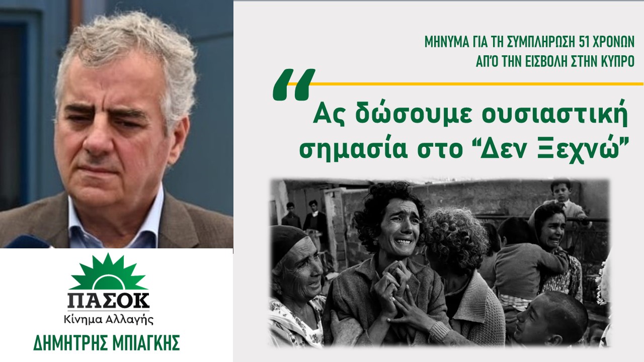Μήνυμα του βουλευτή του ΠΑΣΟΚ για τη συμπλήρωση 51 χρόνων από την εισβολή στην Κύπρο.