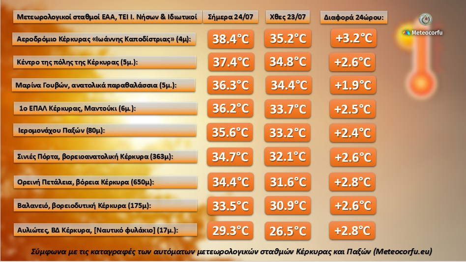 Σύμφωνα με τις καταγραφές των αυτόματων μετεωρολογικών σταθμών Κέρκυρας και Παξών (Meteocorfu.eu)