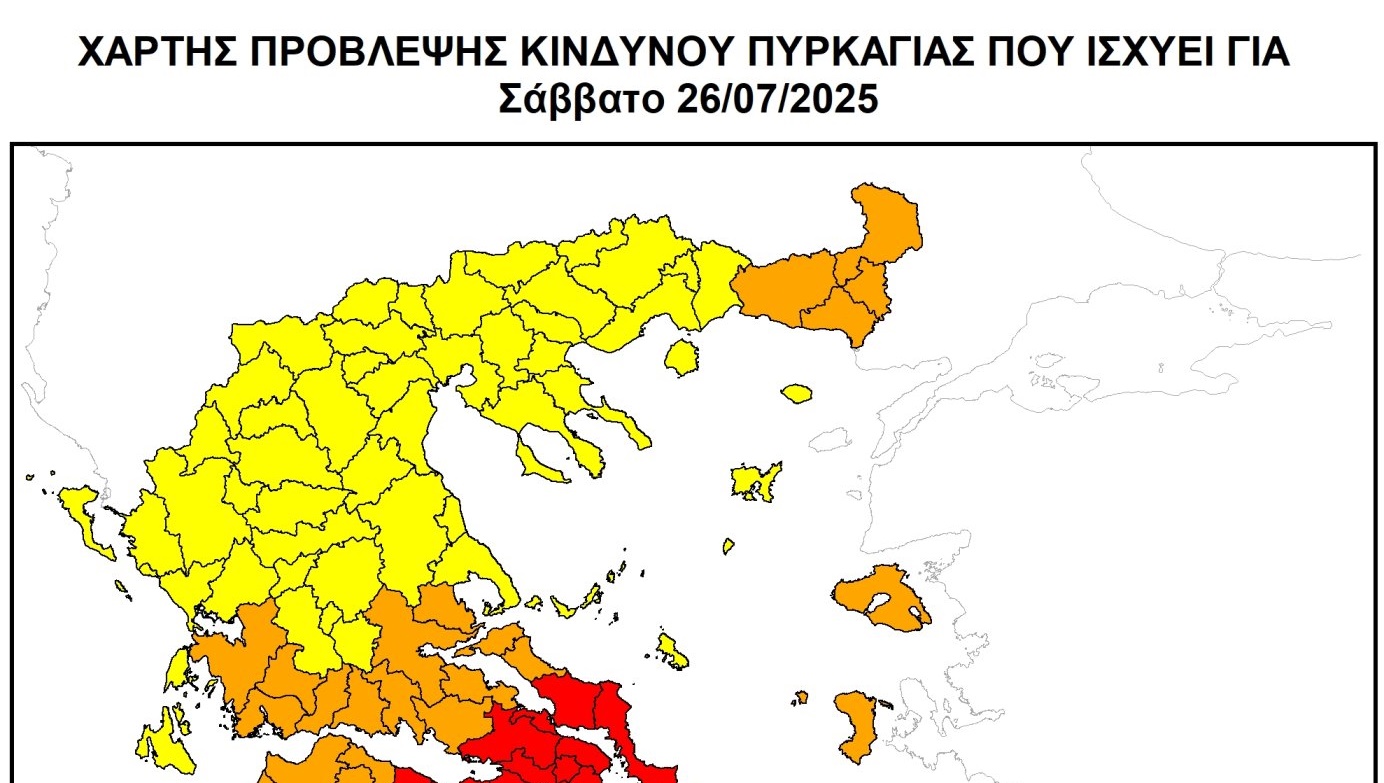 Σύμφωνα με το Χάρτη Πρόβλεψης Κινδύνου Πυρκαγιάς που εκδίδει η Γενική Γραμματεία Πολιτικής Προστασίας (www.civilprotection.gr), για αύριο Σάββατο 26 Ιουλίου 2025, η πρόβλεψη του κινδύνου εκτιμάται Υψηλή (Κατηγορία 3), για την Περιφερειακή Ενότητα Κέρκυρας.