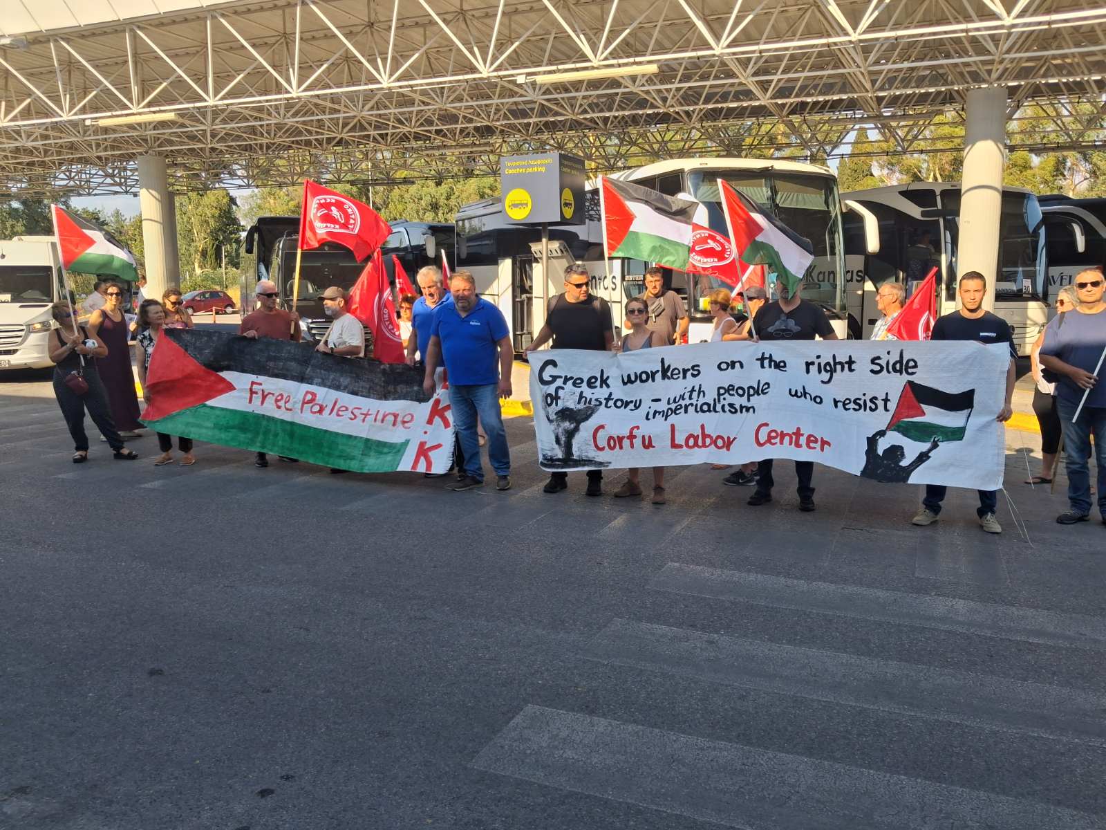 Αντιιμπεριαλιστική κινητοποίηση πραγματοποίησε το Εργατικό Κέντρο Κέρκυρας στο αεροδρόμιο Ι. Καποδίστριας, κατά την οποία μέλη των σωματείων μοίρασαν μαζικά ανακοίνωση, μεταφρασμένη και στα αγγλικά, σε εργαζόμενους αλλά και εκατοντάδες επισκέπτες.