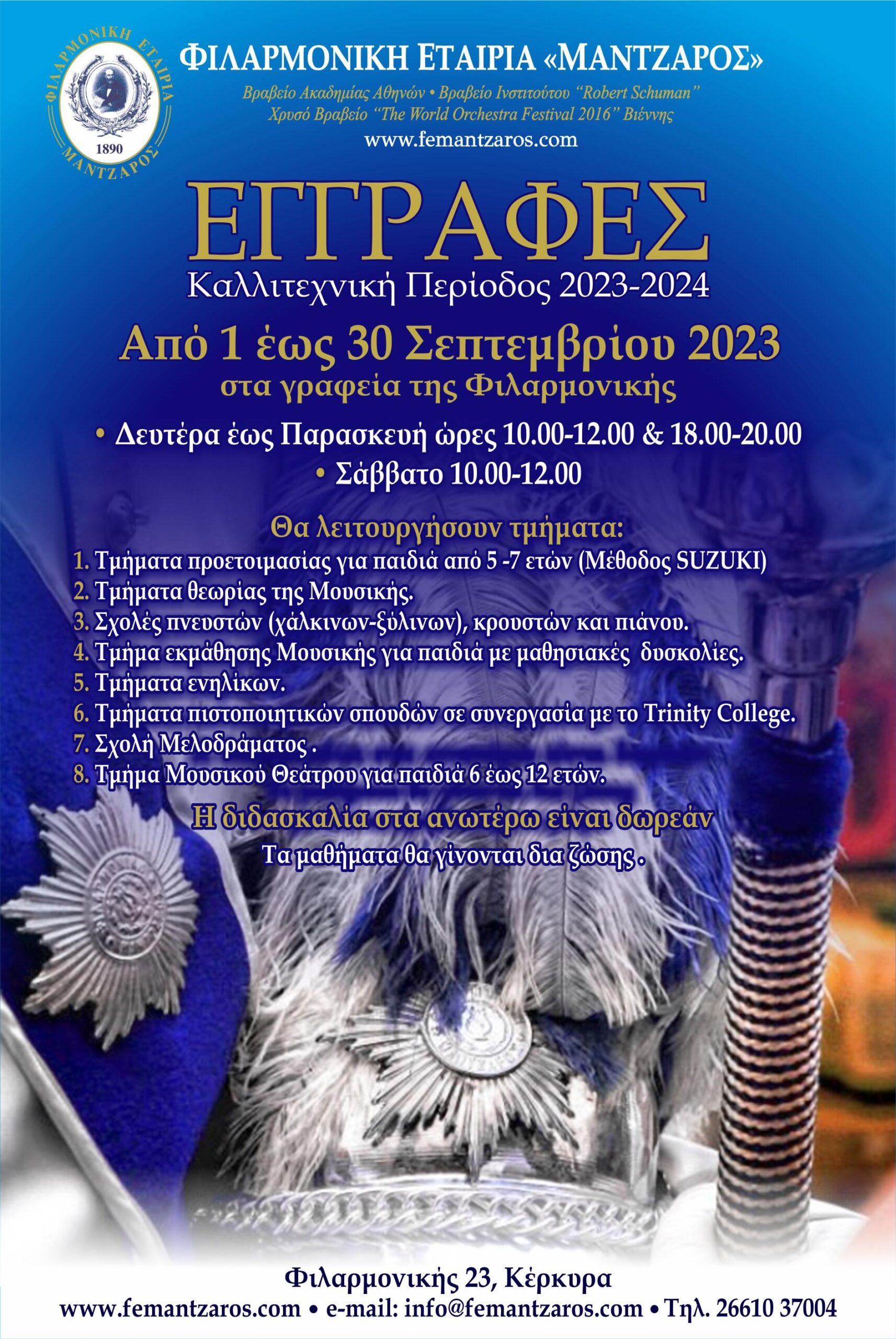 Το μουσικό σώμα της «ΜΑΝΤΖΑΡΟΣ» διηύθυνε ο Αρχιμουσικός κ. Σωκράτης Άνθης.