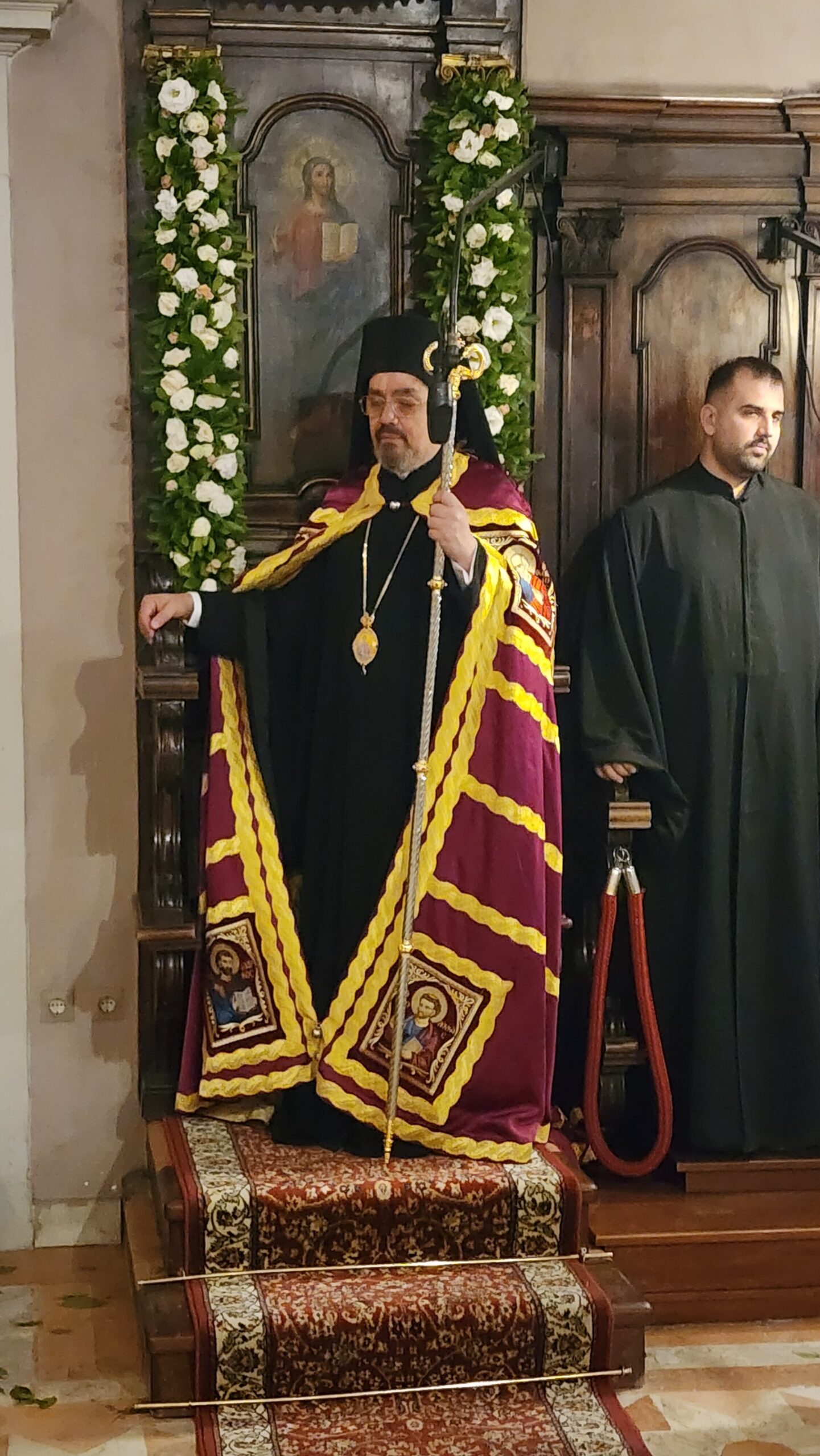 Με Αρχιερατικό Εσπερινό, χοροστατούντος του Θεοφιλεστάτου Επισκόπου Κοτυαίου κ. Διονυσίου, βοηθού επισκόπου της Ιεράς Μητροπόλεως Ιταλίας, συνεχίστηκαν το απόγευμα της Τρίτης 12 Αυγούστου 2025 στην Κέρκυρα οι εκδηλώσεις για την ανάμνηση του θαύματος του Αγίου Σπυρίδωνος, με το οποίο διασώθηκε το νησί από την πολιορκία των Οθωμανών Τούρκων το 1716.