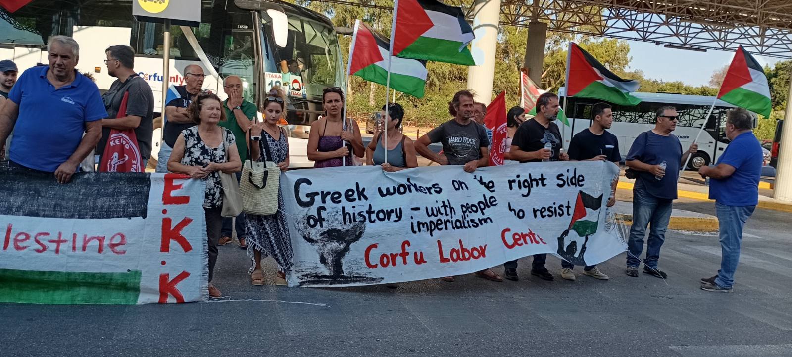 Το Εργατικό Κέντρο Κέρκυρας, το ΠΑΜΕ, και εκατοντάδες Συνδικάτα, Ομοσπονδίες και Εργατικά Κέντρα σε όλη τη χώρα, συνεχίζουμε μαχητικά τον αγώνα για να σταματήσει η γενοκτονία του λαού της Παλαιστίνης. Είμαστε στο πλευρό όλων όσων σήμερα παρά τις συλλήψεις, τις διώξεις και την άγρια καταστολή, αντιστέκονται μέσα στη καρδιά του κτήνους μέσα στο δολοφονικό κράτος του Ισραήλ, ενάντια στη γενοκτονία του Παλαιστινιακού λαού.