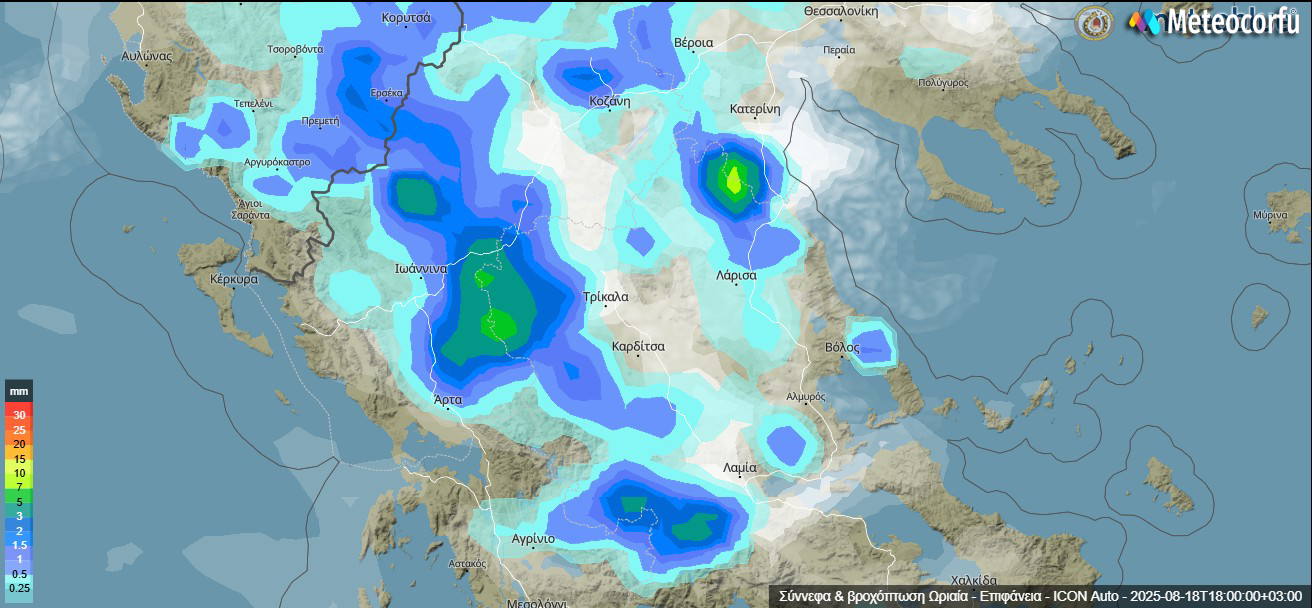 Με έντονη αστάθεια και αξιόλογες βροχές και καταιγίδες αναμένεται να επηρεαστούν συγκεκριμένα σημεία της Ηπειρωτικής χώρας, κυρίως οι ορεινές περιοχές της Ηπείρου. Αντίθετα, η Κέρκυρα φαίνεται να παραμένει ανεπηρέαστη από το κύμα κακοκαιρίας, τουλάχιστον προς το παρόν.