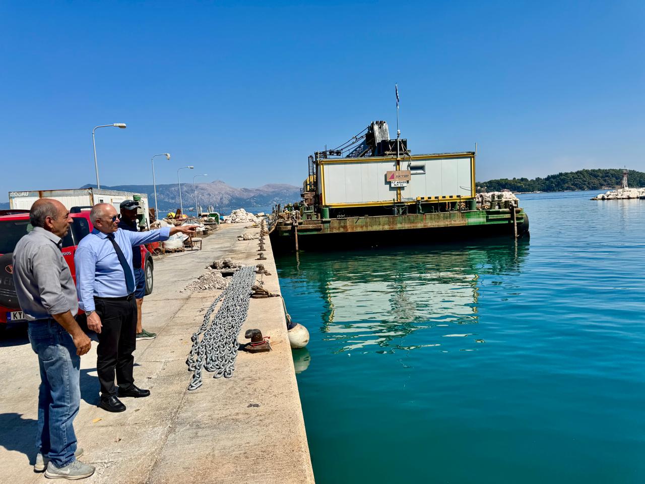 Ο κ. Υφυπουργός, αφού ενημερώθηκε από τον υπεύθυνο της αναδόχου εταιρείας, για την πρόοδο του λιμενικού έργου, δήλωσε: