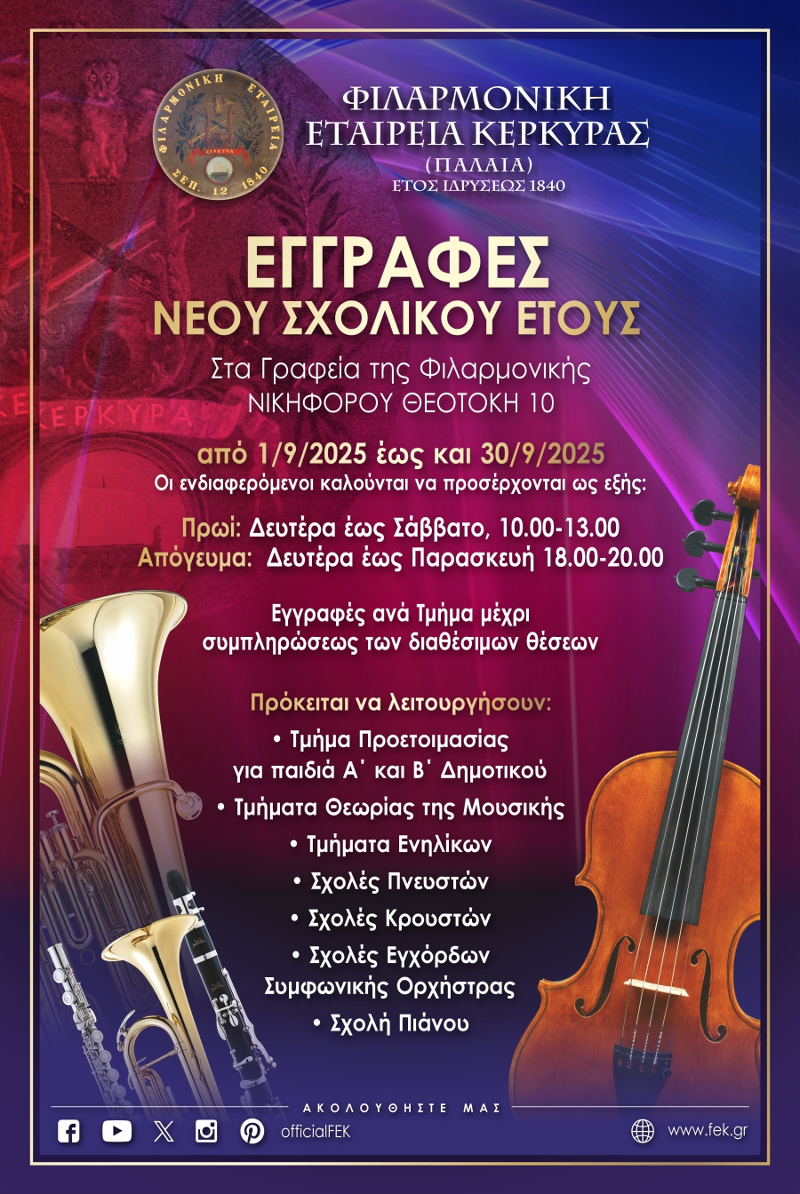 ΠΟΛΙΤΙΣΜΟΣ - ΕΚΔΗΛΩΣΕΙΣΕΙΔΗΣΕΙΣCULTURE Πότε ξεκινούν οι εγγραφές στην Παλαιά Οι Εγγραφές στην Παλαιά Φιλαρμονική ξεκινούν από 1η Σεπτεμβρίου. Last updated: 22/08/2025 16:19 ΝΙΚΟΛΑΪΣ ΒΛΑΧΟΥ Published: 22/08/2025 Share SHARE Οι Εγγραφές στην Παλαιά Φιλαρμονική ξεκινούν από 1η Σεπτεμβρίου. Αναλυτικά: Γκερέκου: Η Παλαιά έστησε μια γέφυρα από το Ιόνιο μέχρι την Ακρόπολη Παλαιά: Επτανησιακή Συναυλία με guest star την Α. Γκερέκου Παλαιά: Το πρόγραμμα της συναυλίας στις 12 Αυγούστου Στις 12 Αυγούστου, η συναυλία της Παλαιάς Στις 12 Αυγούστου, η συναυλία της Παλαιάς Share This Article Facebook Whatsapp Whatsapp Email Copy Link Print Previous Article Νέα «βροχή» προστίμων από την Υπηρεσία Καθαριότητας Next Article Που θα γίνουν προγραμματισμένες διακοπές ρεύματος το διάστημα 23-25 Αυγούστου Δεν υπάρχουν Σχόλια Δεν υπάρχουν Σχόλια Αφήστε μια απάντηση Ακύρωση απάντησηςΗ ηλ. διεύθυνση σας δεν δημοσιεύεται. Τα υποχρεωτικά πεδία σημειώνονται με *Σχόλιο * Όνομα * Email * Ιστότοπος Αποθήκευσε το όνομά μου, email, και τον ιστότοπο μου σε αυτόν τον πλοηγό για την επόμενη φορά που θα σχολιάσω. ΑναζήτησηΑναζήτησηRecent PostsΌλα τα μάτια στον Θοδωρή, τον καπετάνιο μας! Τη Δευτέρα 22 Σεπτεμβρίου γιορτάζει… Σαν Σήμερα 22/9: Τα σημαντικότερα γεγονότα… Η πρόγνωση του καιρού Έφηβοι Ιονίου: Με περίπατο, συνεχίζουν στο Rising Stars! Recent CommentsΧωρίς σχόλια για εμφάνιση.