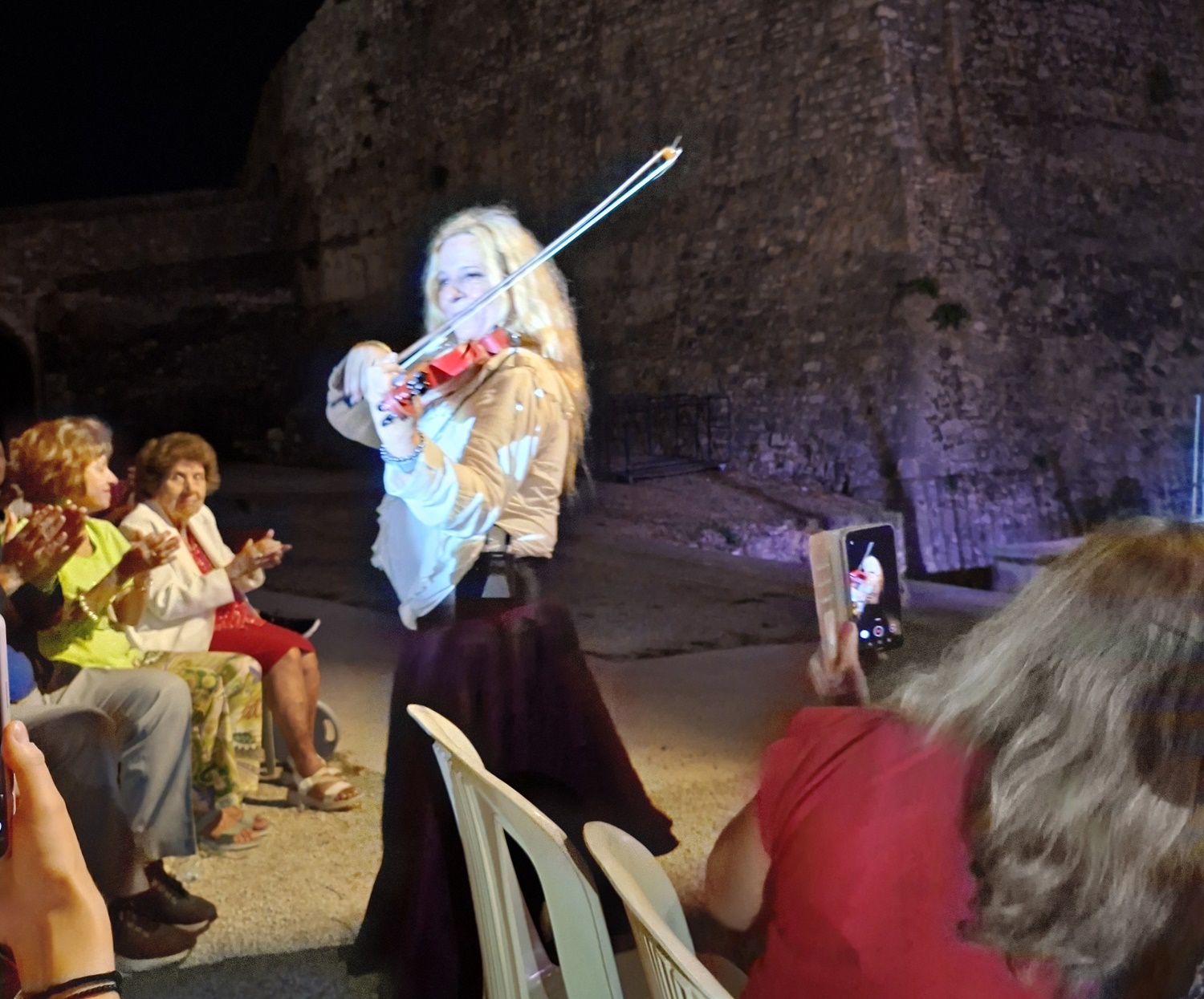 Τυχεροί όσοι βρεθήκαμε στο Παλαιό Φρούριο, σε μία μουσική συνεύρεση που λες και έχει γίνει θεσμός…Γιατί έχουμε ζήσει και πάλι τη συνεργασία της Φιλαρμονικής ΟΜΟΝΟΙΑ με την κορυφαία συνθέτη και βιολονίστρια….Όμως, κάθε φορά είναι μία άλλη φορά και όχι άλλη μία φορά… Η Ευανθία Ρεμπούτσικα ήρθε με 3 εξαιρετικούς μουσικούς και μία νέα ερμηνεύτρια και η βραδιά δεν θέλαμε να τελειώσει…Δεν ήταν μόνο η ταύτιση με την Φιλαρμονική σε μία συνύπαρξη με κλειστά μάτια, το συγκλονιστικο ήταν όλο ό,τι συνέβη επί σκηνής…Η Ευανθία και οι μουσικές της, δεν σε άφηναν ούτε στιγμή να προλάβεις να ελέγξεις τα συναισθήματα σου. Το βιολί της υπηρετούσε μαγικά τις συνθέσεις της, πότε τρυφερές, πότε καταιγιστικές, γεμάτες χρώματα, γεύσεις, τόπους, αρώματα….Κάποια στιγμή, άφησε τη σκηνή και βρέθηκε παίζοντας μέσα στον κόσμο, σε μια πραγματικά ιδιαίτερη στιγμή, που κορύφωσε τα αισθήματα….