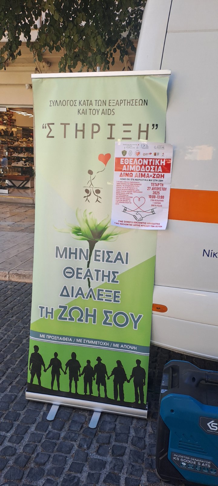 Ο Σύλλογος ΣΤΗΡΙΞΗ κατά των Εξαρτήσεων και του AIDS ευχαριστεί θερμά τους Κερκυραίους πολίτες για την μεγάλη ανταπόκριση τους στην δράση εθελοντικής αιμοδοσίας που συνδιοργάνωσε με το Τμήμα Αιμοδοσίας του Γενικού Νοσοκομείου Κέρκυρας, την Ιατροχειρουργική Εταιρεία Κέρκυρας, , την ΔΗΜΟΠ « ΝΙΚΟΣ ΜΩΡΟΣ», την Αναγέννηση Κερκυραϊκού Κρίκετ 2021 και με την υποστήριξη του Συλλόγου Εθελοντών Αιμοδοτών και Δοτών Μυελού των Οστών «ΠΑΝΔΟΤΗ», στα πλαίσια των προγραμματισμένων δράσεων του Συλλόγου μας για την « Παγκόσμια Ημέρα Κατά των Ναρκωτικών».
