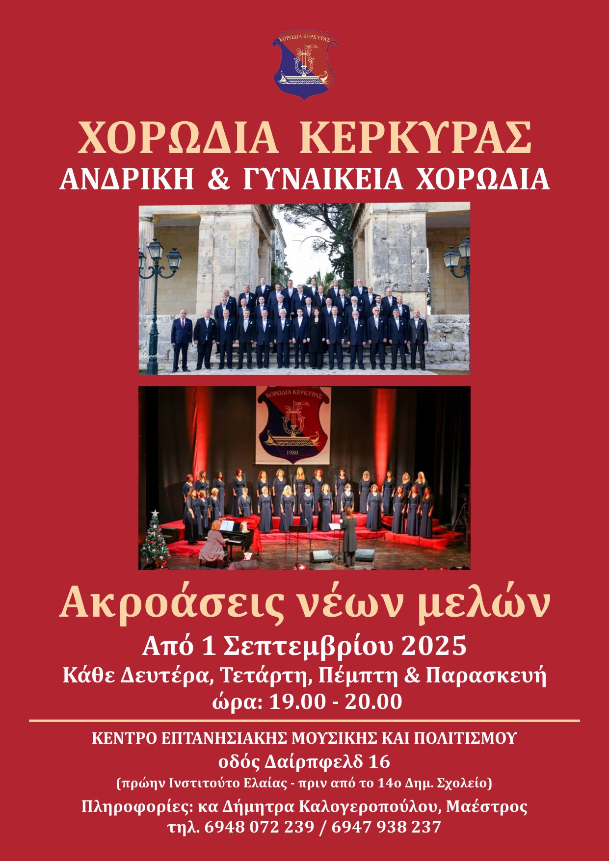 ΠΟΛΙΤΙΣΜΟΣ - ΕΚΔΗΛΩΣΕΙΣΕΙΔΗΣΕΙΣCULTURE Εγγραφές στη Χορωδία Κέρκυρας και στο Κέντρο Επτανησιακής Μουσικής Εγγραφές στη Χορωδία Κέρκυρας και στο Κέντρο Επτανησιακής Μουσικής Last updated: 29/08/2025 10:02 CorfuPress.com Published: 29/08/2025 Share SHARE Εγγραφές στη Χορωδία Κέρκυρας και στο Κέντρο Επτανησιακής Μουσικής Συναυλία με τραγούδια του Μάνου Χατζηδάκι στο Μον Ρεπό Συναυλία με τραγούδια του Μάνου Χατζηδάκι στο Μον Ρεπό Χορωδία Κέρκυρας: Συγχαρητήρια σε Ρουβά… Χορωδία Κέρκυρας: Συγχαρητήρια σε Ρουβά… Συμμετοχή της Ανδρικής Χορωδίας Κέρκυρας σε εκδήλωση του Δικτύου Πόλεων “Ι. Καποδίστριας” Share This Article Facebook Whatsapp Whatsapp Email Copy Link Print Previous Article Μειώσεις στα τιμολόγια ρεύματος από τον Σεπτέμβριο Next Article Πρόσκληση για συμμετοχή στις διενεργούμενες έρευνες της Ελληνικής Στατιστικής Αρχής Δεν υπάρχουν Σχόλια Δεν υπάρχουν Σχόλια Αφήστε μια απάντηση Ακύρωση απάντησηςΗ ηλ. διεύθυνση σας δεν δημοσιεύεται. Τα υποχρεωτικά πεδία σημειώνονται με *Σχόλιο * Όνομα * Email * Ιστότοπος Αποθήκευσε το όνομά μου, email, και τον ιστότοπο μου σε αυτόν τον πλοηγό για την επόμενη φορά που θα σχολιάσω. ΑναζήτησηΑναζήτησηRecent PostsΌλα τα μάτια στον Θοδωρή, τον καπετάνιο μας! Τη Δευτέρα 22 Σεπτεμβρίου γιορτάζει… Σαν Σήμερα 22/9: Τα σημαντικότερα γεγονότα… Η πρόγνωση του καιρού Έφηβοι Ιονίου: Με περίπατο, συνεχίζουν στο Rising Stars! Recent CommentsΧωρίς σχόλια για εμφάνιση.