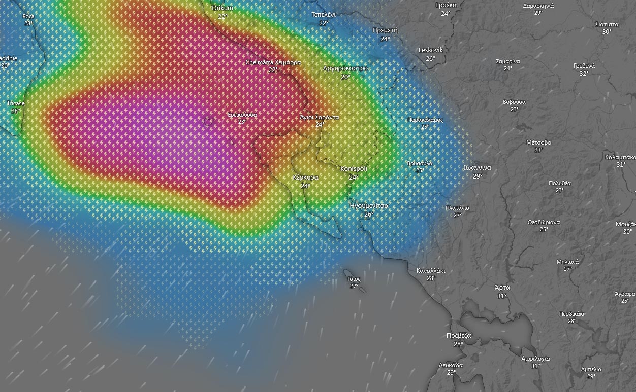 Η κακοκαιρία, που κινείται από την Ιταλία, αναμένεται να εκδηλωθεί με έντονη κεραυνική δραστηριότητα και ριπές ανέμου που θα μπορούσαν να φτάσουν τα 6 μποφόρ, καθώς νέφη τύπου Cumulus και Cumulonimbus θα καλύψουν τον ουρανό της Κέρκυρας και της ευρύτερης περιοχής.