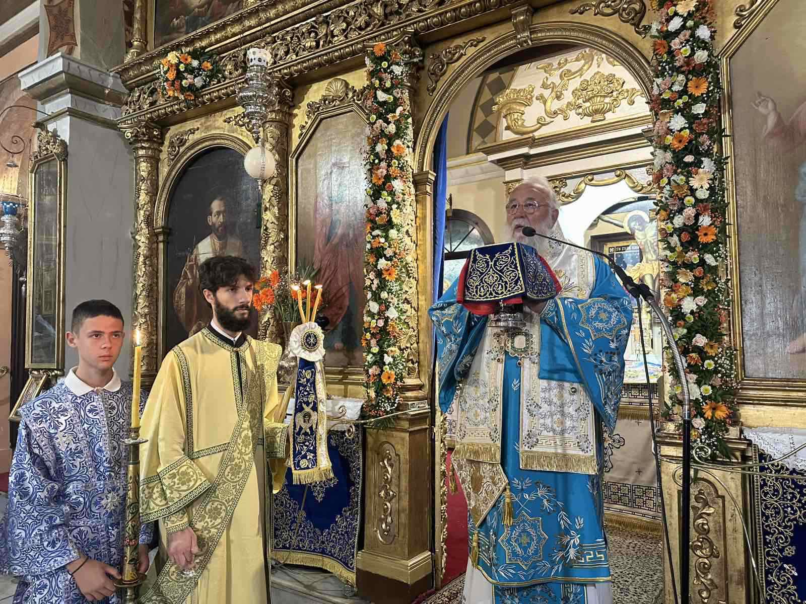 Στο τέλος της ομιλίας του ο Σεβασμιώτατος ευχήθηκε και προσευχήθηκε η Κραταιά Σκέπη της Παναγίας να προστατεύει την πατρίδα μας, τις οικογένειες και τον πιστό λαό του Θεού.
