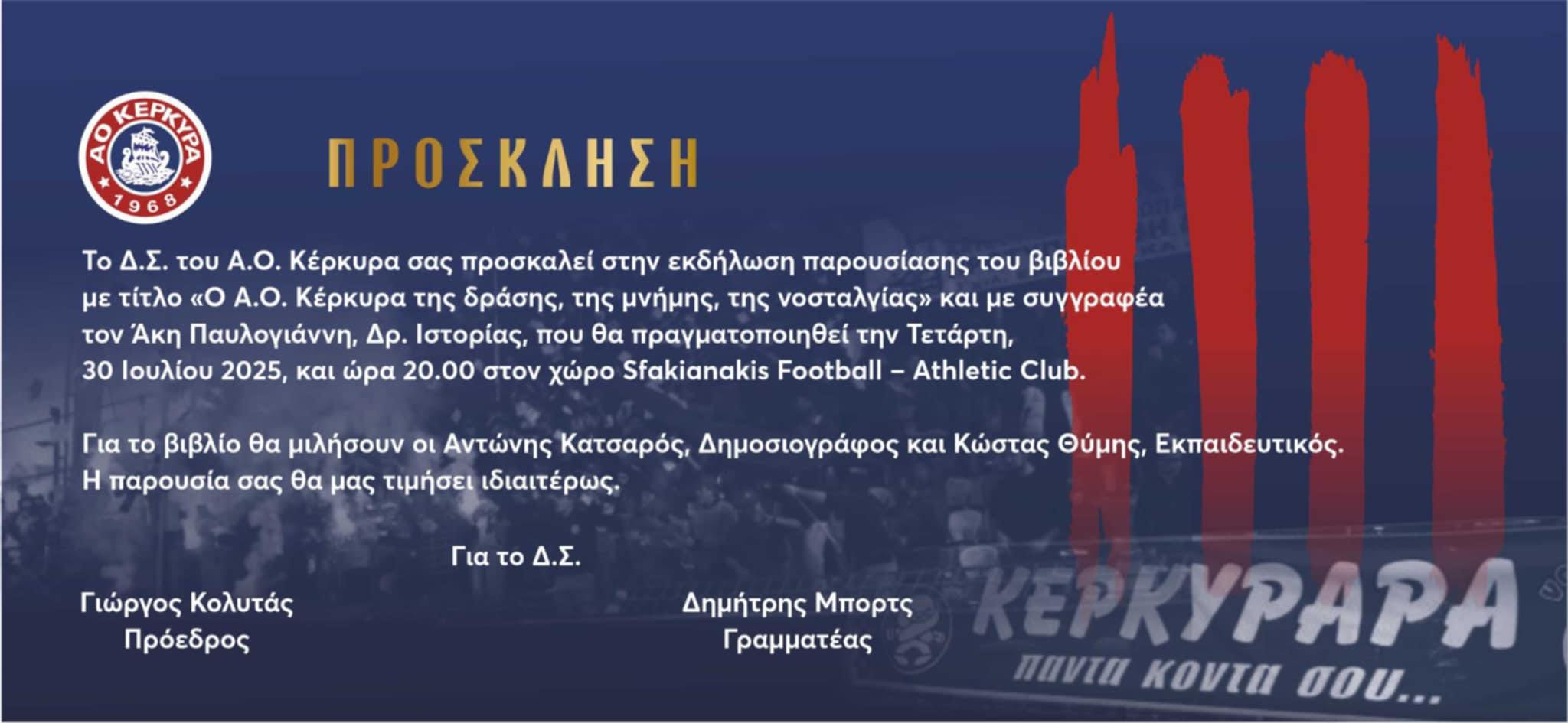 Την Τετάρτη, η παρουσίαση του βιβλίου του ΑΟ Κέρκυρα