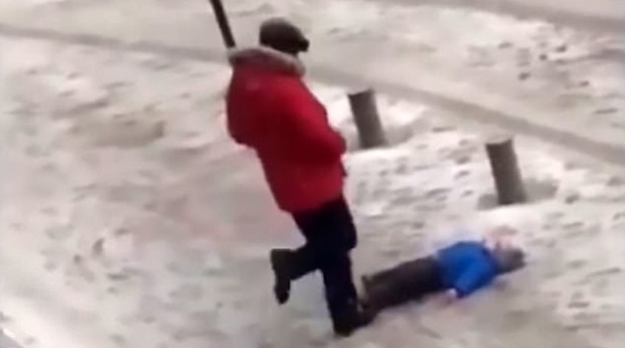 Αδιανόητο: Πα-τέρας κλωτσάει το παιδί του επειδή γλίστρησε στο χιόνι