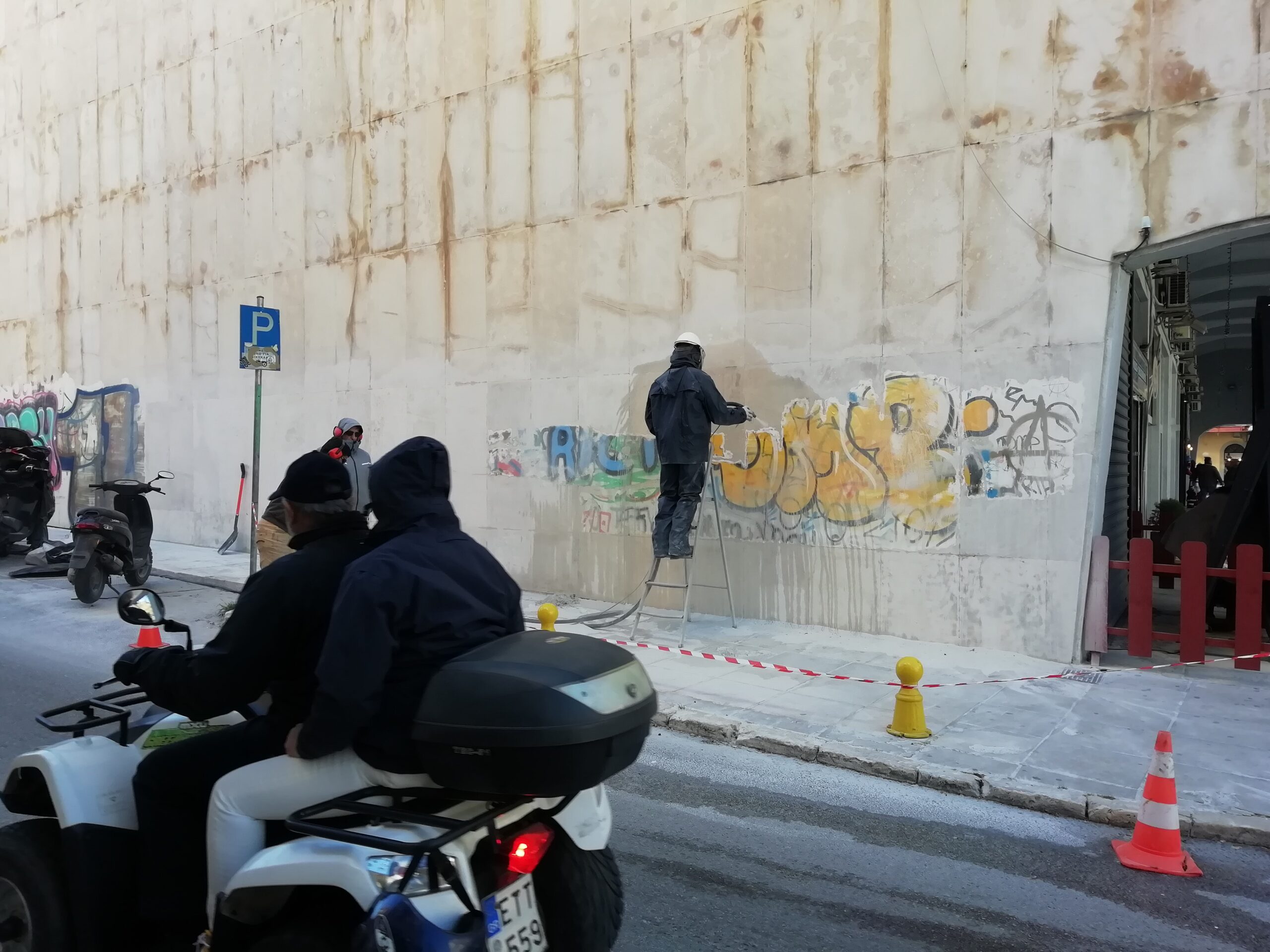 Αφαιρούν τα γκράφιτι από το δημοτικό θέατρο