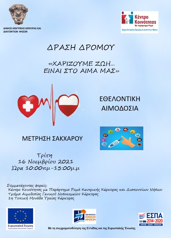 Δράση Δρόμου εθελοντικής αιμοδοσίας και δωρεάν μέτρησης σακχάρου