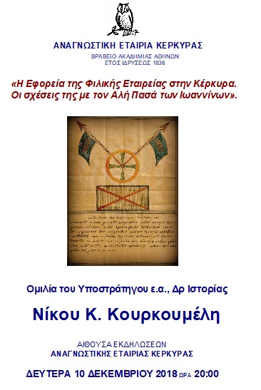 «Η Εφορεία της Φιλικής Εταιρείας στην Κέρκυρα. Οι σχέσεις της με τον Αλή Πασά», στην Αναγνωστική
