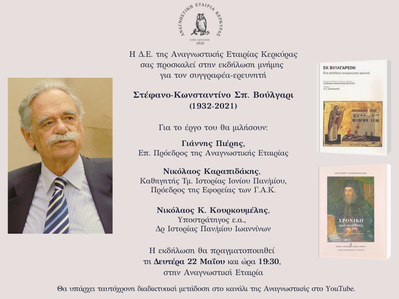 Εκδήλωση μνήμης για τον Στέφανο-Κωνσταντίνο Βούλγαρι