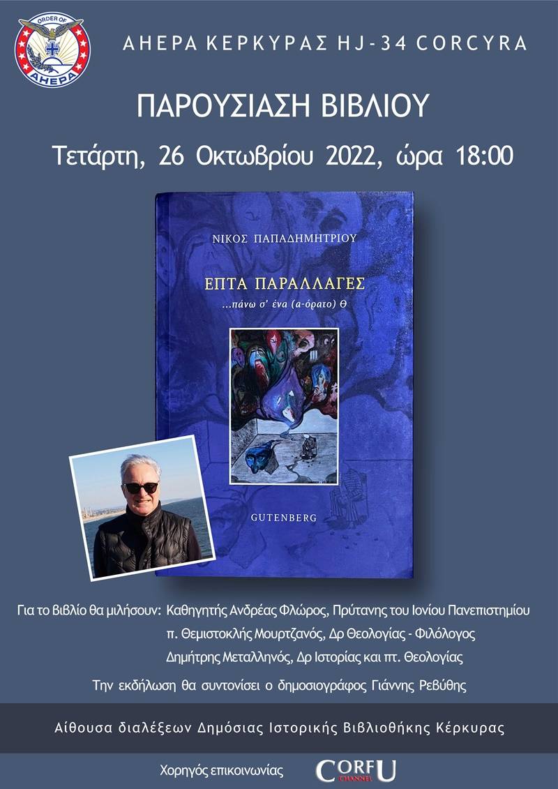 Η ΑΧΕΠΑ Κέρκυρας παρουσιάζει το νέο βιβλίο του Νίκου Παπαδημητρίου