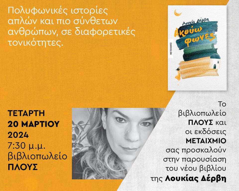 Βιβλιοπαρουσίαση: Ακούω φωνές της Λουκίας Δέρβη στο ΠΛΟΥΣ