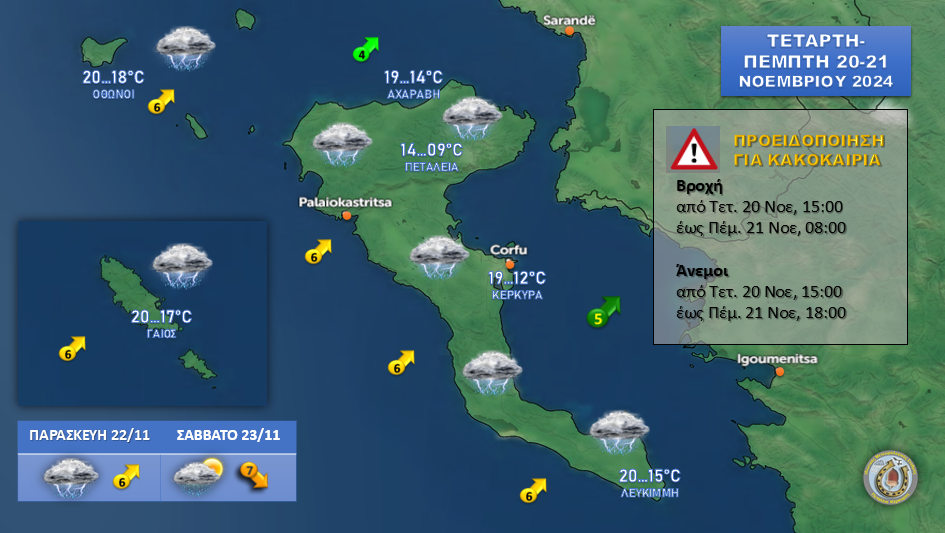 Κέρκυρα: Σημαντική επιδείνωση του καιρού Τετάρτη & Πέμπτη