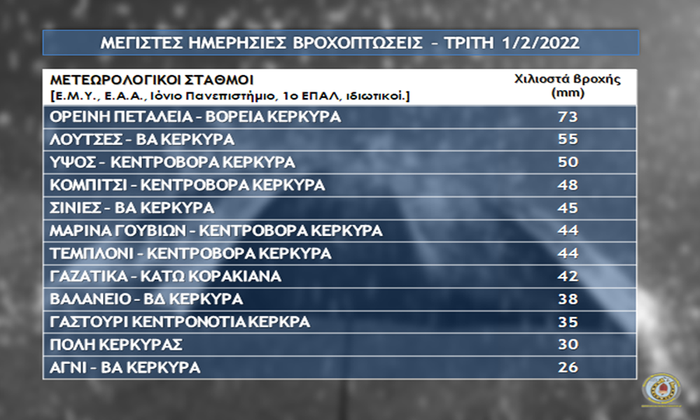 EVA: Που έπεσε η περισσότερη βροχή στην Κέρκυρα