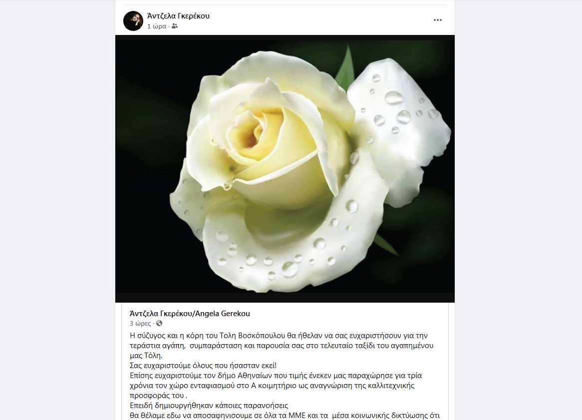 Η Α. Γκερέκου απαντά: Εμείς καλύψαμε τα έξοδα της κηδείας του Τόλη
