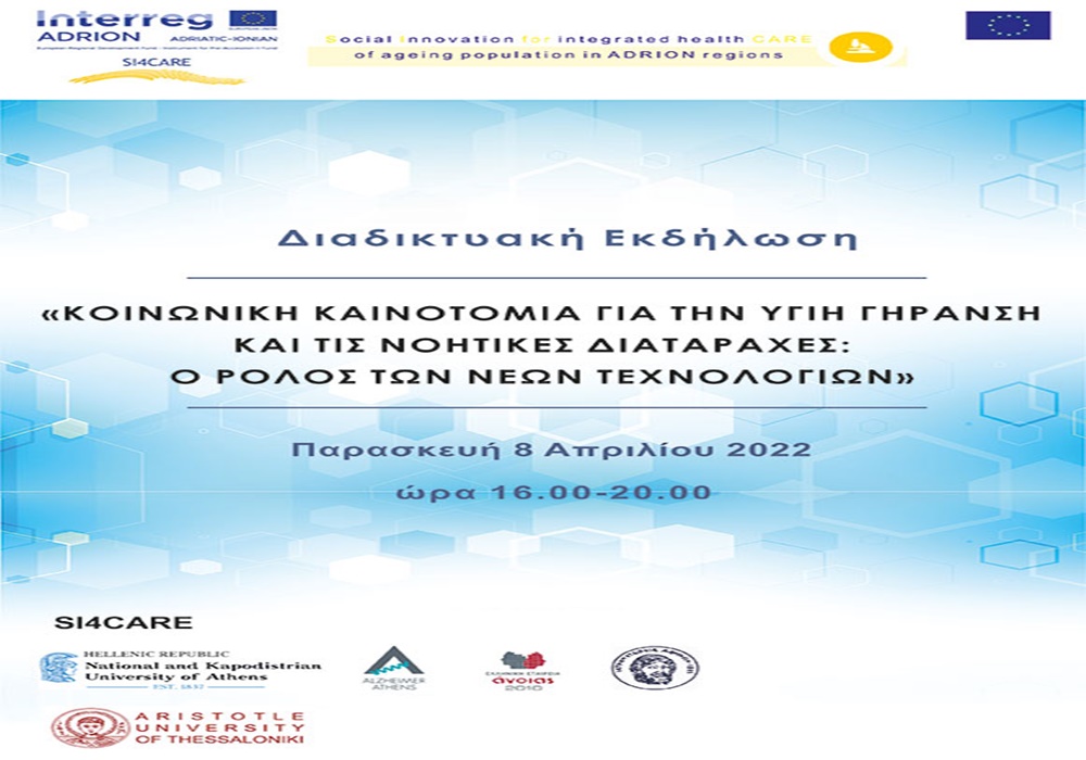 “Κοινωνική καινοτομία για την υγιή γήρανση και τις νοητικές διαταραχές: ο ρόλος των νέων τεχνολογιών”
