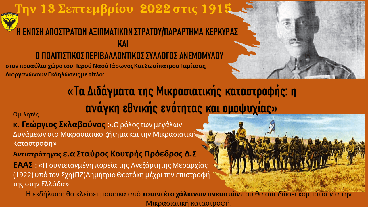 Εκδήλωση: Διδάγματα της Μικρασιατικής Καταστροφής
