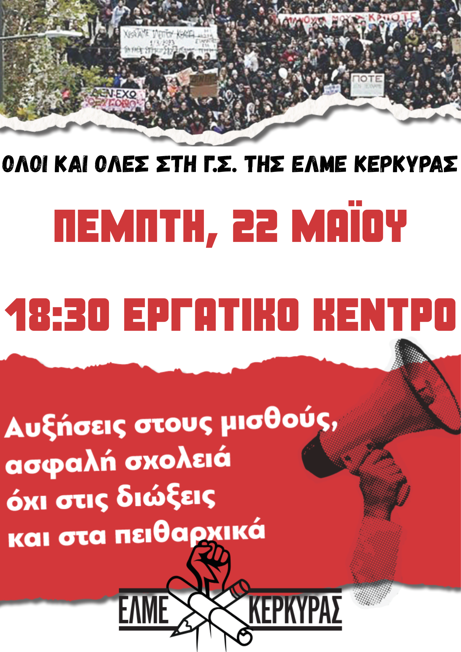Έκτακτη Γενική Συνέλευση της ΕΛΜΕ Κέρκυρας