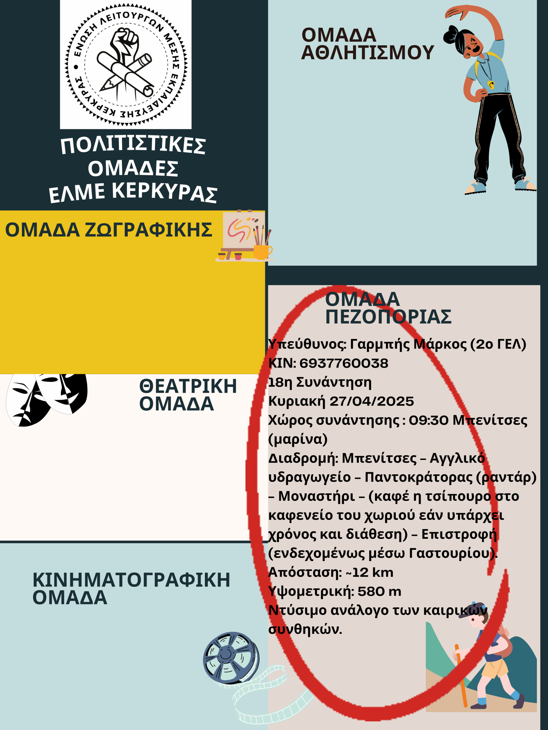 Την Κυριακή, η 18η συνάντηση της ομάδας πεζοπορίας της ΕΛΜΕ
