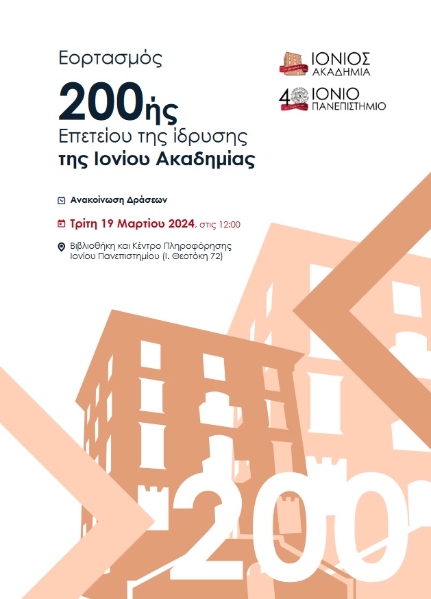 Εκδηλώσεις για τα 200 χρόνια από την ίδρυση της Ιονίου Ακαδημίας