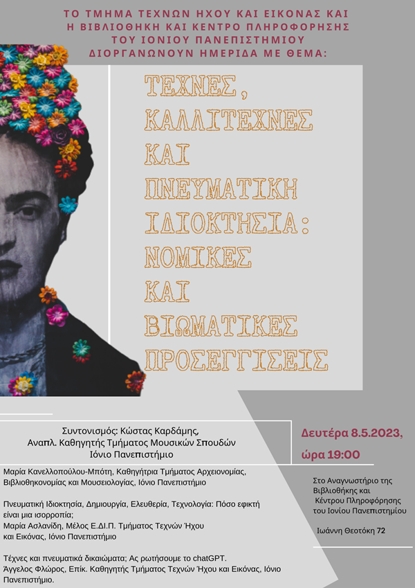 “Τέχνες, Καλλιτέχνες και Πνευματική Ιδιοκτησία: νομικές και βιωματικές προσεγγίσεις”