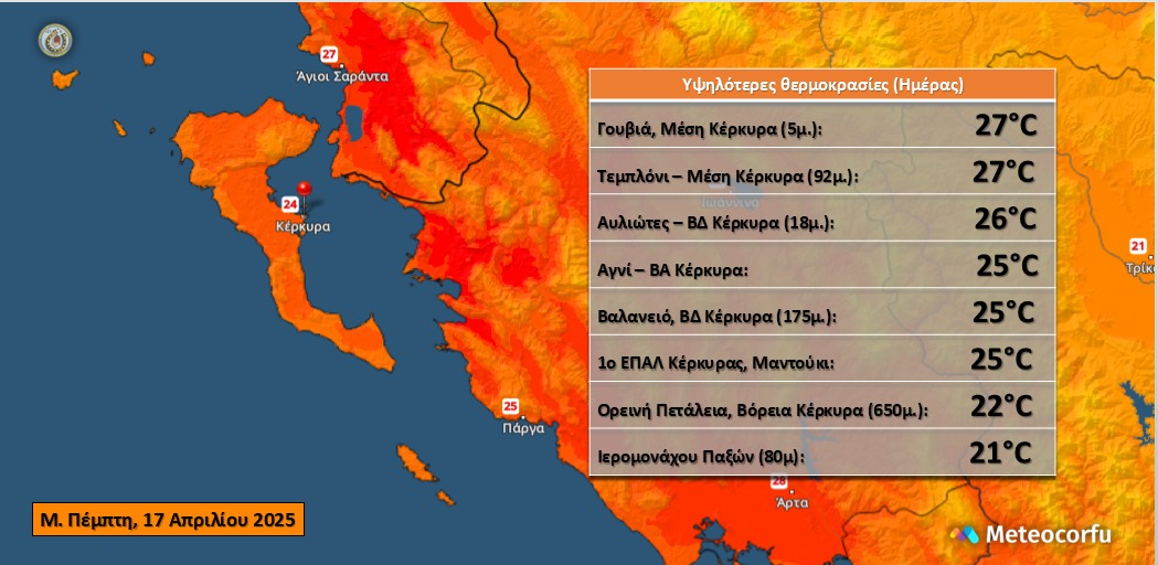Μεγάλες θερμοκρασίες στην Κέρκυρα