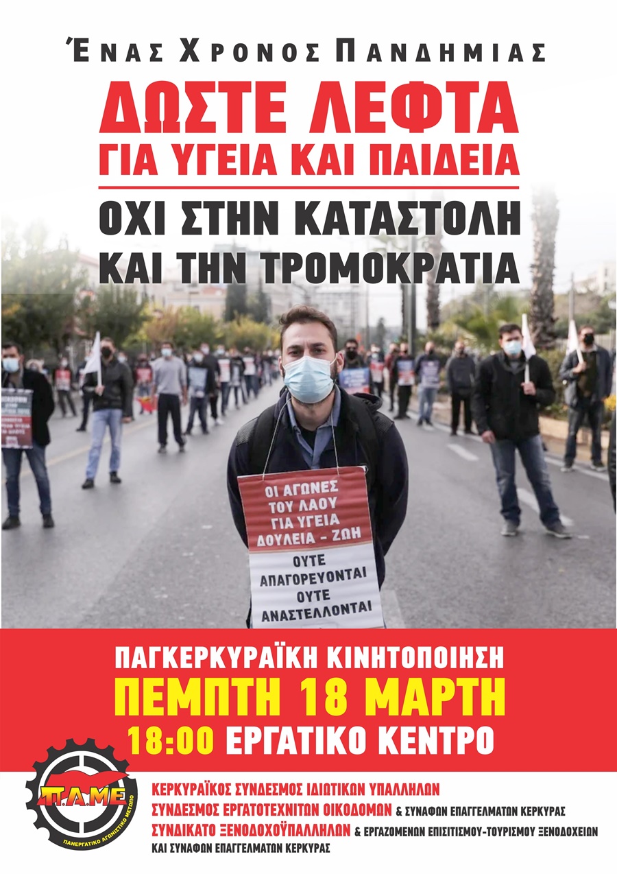 Παγκερκυραϊκή κινητοποίηση την Πέμπτη στο Εργατικό Κέντρο