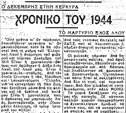 Ο κερκυραϊκός Δεκέμβρης του 1944